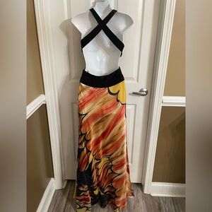 TERANI COUTURE Halter 100% Silk Dress Maxi Boho Sash Crisscross Back Size 2
