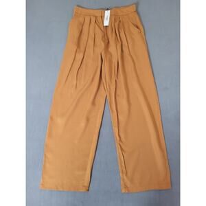 TEREA Womens Lexie Pleated Front Pant Pockets Wide Leg Adobe Large. Condition is New with tags.