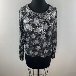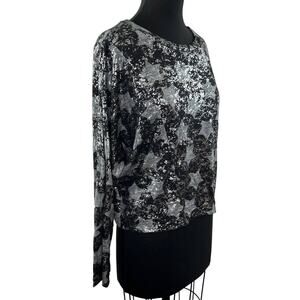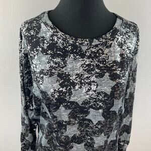 TEREZ Black Silver Long Sleeve Foil Star Print Cropped Pullover Sweater Size S