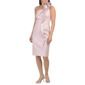 TERI JON Metallic Jacquard One Shoulder Floral Applique Mini Dress