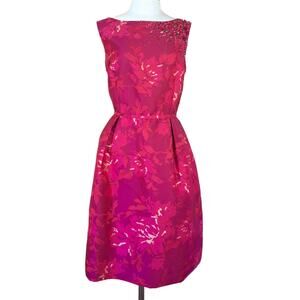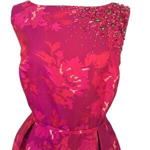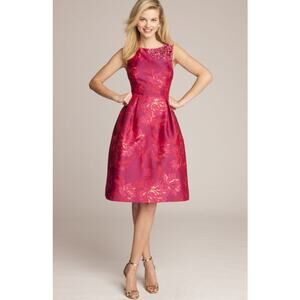 TERI JON Pink Floral Jacquard Embellished Fit & Flare Midi Cocktail Dress Sz 14