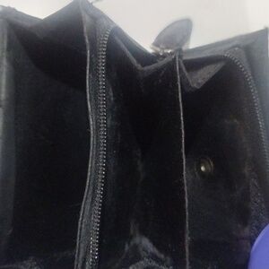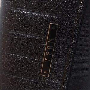 The TERN Black Leather Canvas Zipper Bi-fold Coin Purse is a chic and practical women's accessory crafted from durable leather and canvas. Measuring 4x3 inches, this compact purse features a secure Snap zipper closure and three compartments, ideal for organizing coins, cash, and small essentials. Its sleek black design combines functionality with a modern aesthetic, making it a versatile choice for everyday use.
