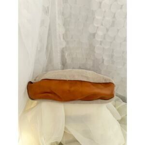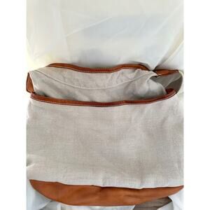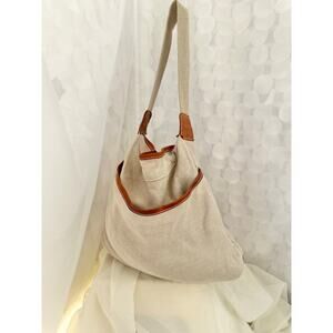 TERRA PAX Large Linen HEMP Slouchy Shoulder Bag Beige Leather Trim Sustainable