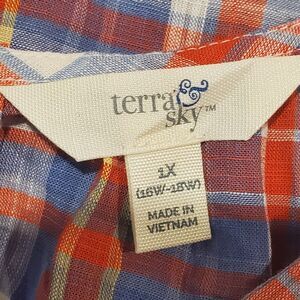TERRA & SKY BOHEMIAN TUNIC BLUE SHORT SLEEVE COTTON SIZE 1X