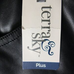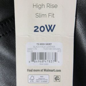 TERRA & SKY Black Faux Leather Midi Skirt Plus Size 20W High Rise Front Slit NWT