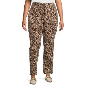TERRA & SKY High Rise Straight Leg Jeans 18W Leo Face Leopard Animal Denim NWT