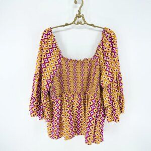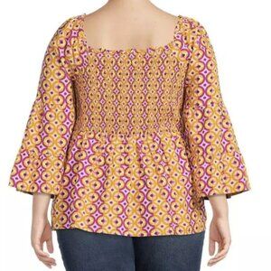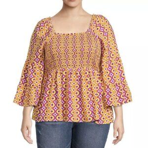 TERRA & SKY Plus Square Neck Cotton Blend Smocked Top Sz 1X