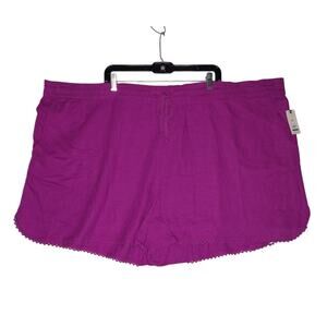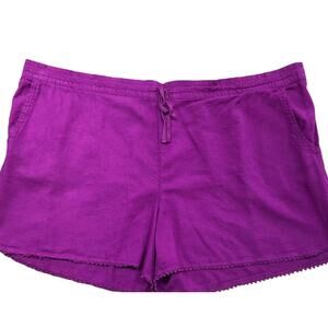 TERRA & SKY Purple Soft Shorts W/Trim Elastic Back, Waist Pockets -Size: 3X