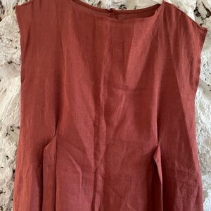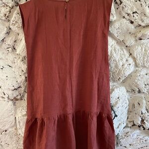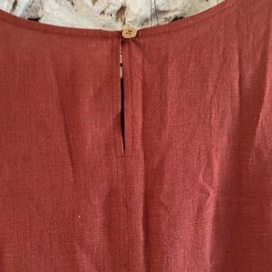 This is a gorgeous terracotta/ochre Linen Dress. ANTHRO style vibes.