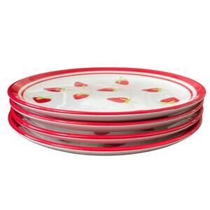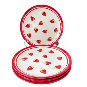 TERRAMOTO Strawberry Summer Ceramic 10.5" Plates Red and White Set of 4 NEW