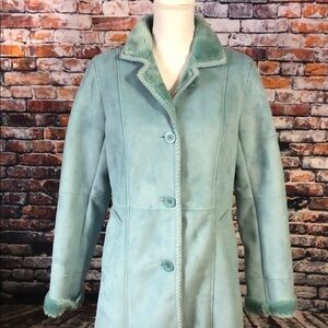 TERRY LEWIS FAUX FUR SUEDE AQUA BLUE COAT SZ S