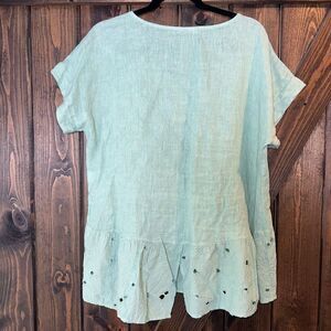 TERZO MILLENNIO Linen Hi-Lo Eyelet Hem Tunic Top Boho Minimalist Hippie Sz M