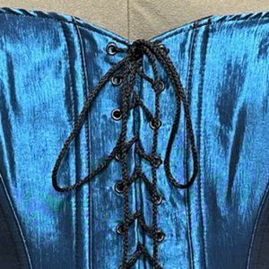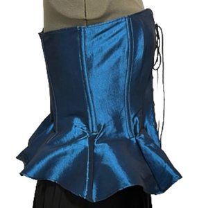 TESA CLASSIC By Escanté Jewel Tone Sapphire Blue Corset/Bustier With Peplum Features Front Lace-up To Customize Fit And Lift. A Zipper In The Back Allows For Easy On And Off. Size: 36 Measurement: - Armpit To Armpit (Flat) ~18.0" - Length: (Center To Hem) ~14.0"; (Armpit To Hem) ~13.0" Material: 55% Polyester, 40% Nylon, 5% Elastic Appearance: Excellent Condition, Never Worn, NWT