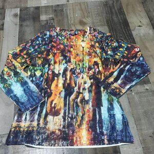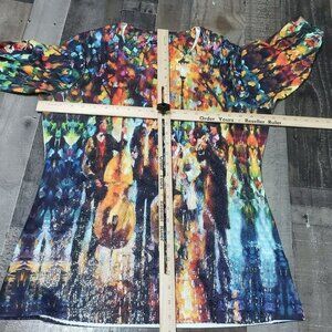 TESA Moda Glowing Music Painting Blouse Sequins Art To Wear Water Color M