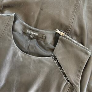 TESS GIBERSON Leather Shift Mini Black Dress Size 0