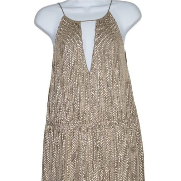 TESSORA Nude Sequin Keyhole Maxi Dress