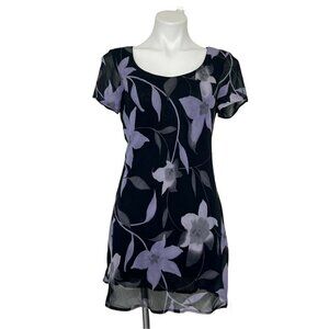TESSUTO Floral Dress SMALL black PURPLE short sleeves