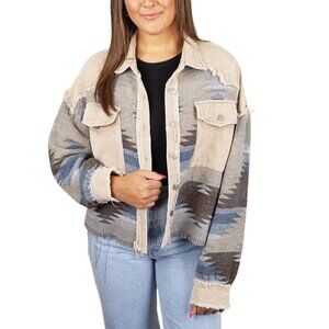 TETON HIKE Cropped Blue Aztec Shacket Trucker Jacket L-3XL NWT
