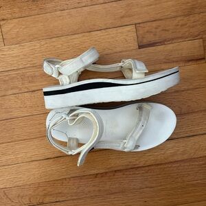 Teva platform sandals Women’s size 11 White Velcro straps Very good condition just are dirty They would be like new if washed Open to offers