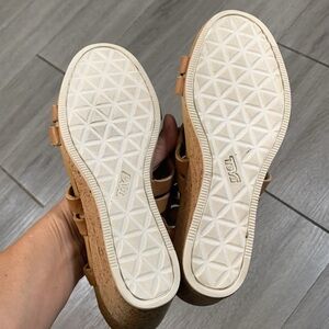 TEVA Strappy Cork Wedge Beige Camel Leather Womens Sandals size 10