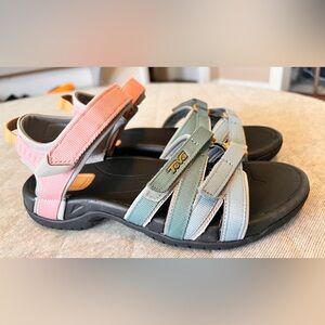 TEVA Sz 6 Teal & Pink Tirra Multi Velcro Straps Hiking Sandals Original $90 Excellent Condition