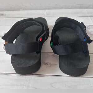 Celebrate comfort and pride with these brand new with tags Teva Universal Midform sandals in a men’s size 11. These iconic sandals feature adjustable black straps with rainbow webbing details and a supportive mid-height platform sole. Designed for all-day wear with a cushioned EVA footbed and durable rubber outsole.