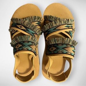 TEVA Women's Teal Aztec Print Flatform CERES Platform Sandals Size 6 | EUC