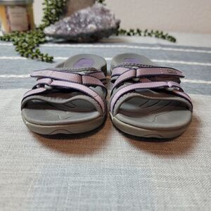Purple and gray Teva Tirra slide sandals. Some wear. Please see all photos for condition. Size 5