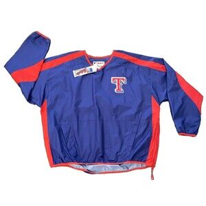 TEXAS RANGERS MLB Major League Baseball Majestic Adult Size 2XL Pullover Windbreaker Pockets Embroidered Logo. Long sleeves.