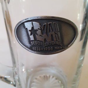 TEXAS SESQUICENTENNIAL MUG WITH PEWTER STAMPED LOGO - HOLDS 12 OUNCES 1836-1986