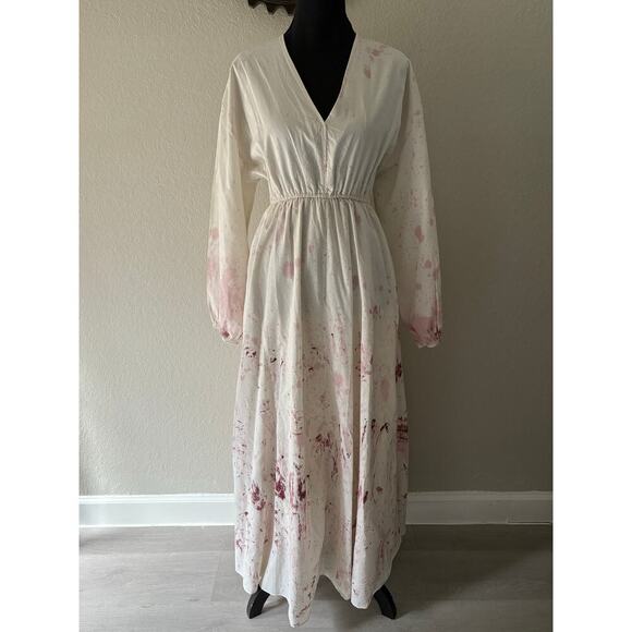 TEXTILE ELIZABETH & JAMES Peasant Dress Splatter Bone/Maroon SzM Cottage Prairie