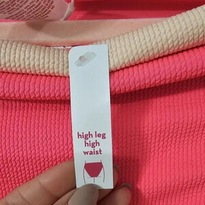 TEXTURED Colorblock Cheeky High Leg High Waist Bikini Bottom - xhilaration
