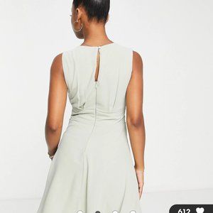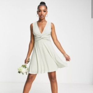 TFNC Bridesmaid flare mini dress in sage green SIZE 8