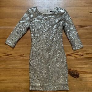 TFNC London silver sequin quarter sleeve mini dress SIZE S