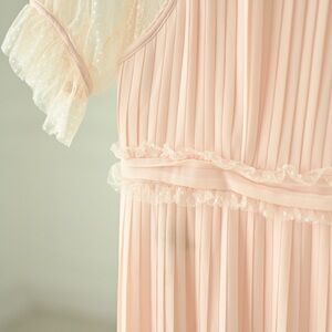 TFNC Pleated Maxi with Polka Dot Mesh Sleeves and Open Back Nude pink Size 10