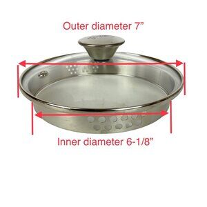 T-Fal Tempered Glass Pot Lid Vented Strainer Stainless Steel Handle 7" Diameter