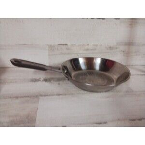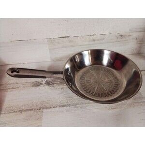 The T-Fal small skillet is a versatile cookware piece suitable for use on both electric and gas stoves. With a raised cooking surface, this skillet provides even heat distribution and easy cooking. Despite some staining and distress on the surface, this Tefal skillet still offers quality and functionality for your kitchen needs. Perfect for frying and grilling small meals or snacks, this skillet is a convenient addition to any kitchen toolbox.