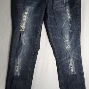 Features: Metal Button & Zip Closure, 5 Pockets, 5 Belt Loops, Distressed, and Skinny.