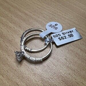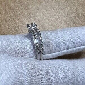 TG 925 Sterling Silver Cubic Zirconia Double Ring Women's Size 8 Rhodium Finish