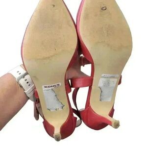 TG Women's Red Faux Leather 2" Pumps with Ankle Straps ALTERED EUC sz 9