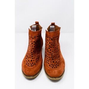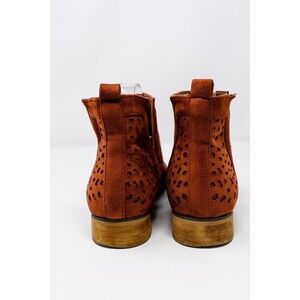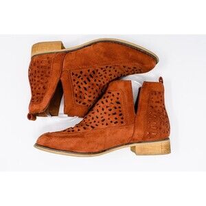 TG Womens Shoes Booties 7.5 Block Heel Burnt Orange rust Faux suede cutout boots
