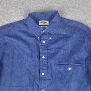 TGI Friday's Shirt Mens XL 16 - 32/33 Blue Chambray Button Down Long Sleeve