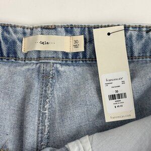 TGLA Denim Shorts Womens Size 30 Light Wash High-Waisted With Fringe Hem