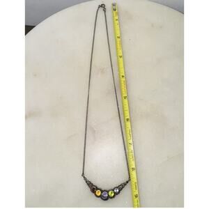 Add timeless color to your jewelry collection with this elegant TH 925 sterling silver necklace featuring a fixed curved bar design set with five bezel-set semi-precious gemstones. The stones include garnet (deep red), citrine (golden yellow), amethyst (lavender), peridot (green), and blue topaz or aquamarine (pale blue).