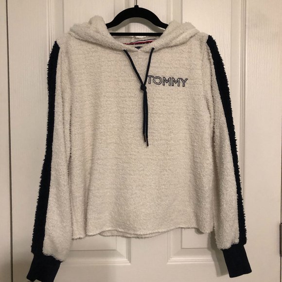 TH Cropped Fuzzy Hoodie w/ TOMMY Embroidered Logo