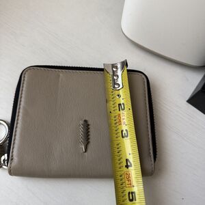 THACKER Julia Leather Small Zip Around Wallet Grey Silver Ring Credit Card