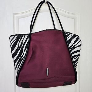 THACKER Maddy Neoprene Large Tote Wine Zebra w Detachable Pouch & Shoe Bag
