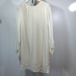 THAKOON ADDITION Women's Sheer Silk Tulip Long Sleeve Shift Dress Ivory Size 6