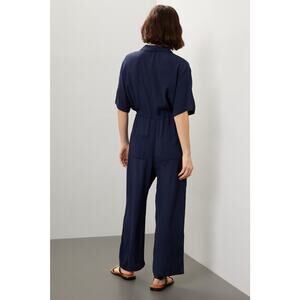 THAKOON COLLECTIVE Navy Button Front Tie Waist Jumpsuit Size 6
