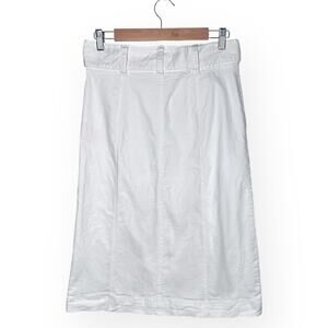 THAKOON COLLECTIVE White Denim Midi Skirt Belted Coquette Trendy Brunch A-Line